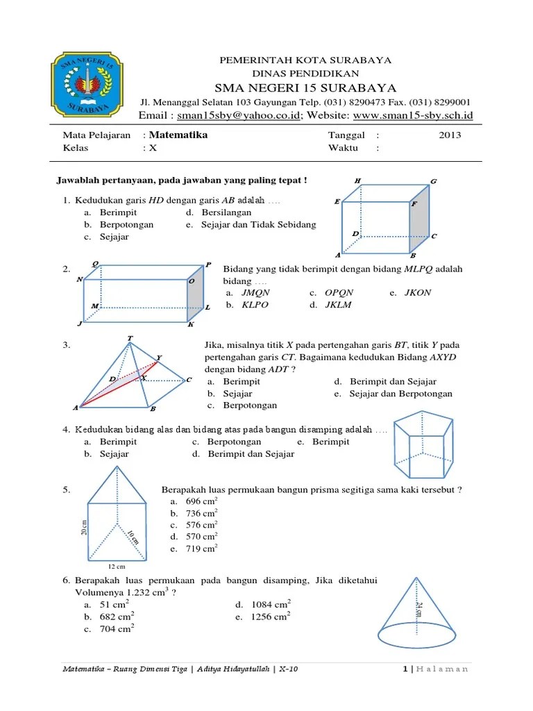Contoh soal dan pembahasan tentang dimensi tiga ajar hitung.