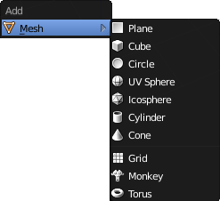 Secara default aplikasi blender akan memberikan objek kotak kubus dimana objek tersebut bisa dibuat dari menu add mesh.